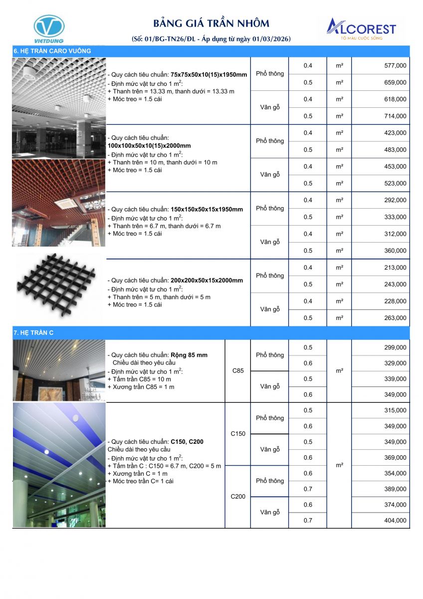 - Báo giá trần nhôm Alcorest 2026 (13.05.2024)